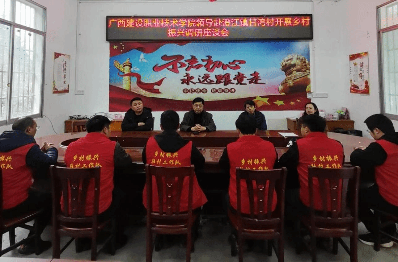 广西建院3月18日讯(党委组织部 潘金德)为持续巩固拓展脱贫攻坚成果,全面推进乡村振兴工作,深入落实国家和自治区关于农田水利设施建设和植树绿化的决策部署,近日,学校党委副书记曾繁雄带队赴都安县定点帮扶村调研指导乡村振兴定点帮扶工作,并参加植树造林活动。曾繁雄副书记一行在澄江镇甘湾村组织召开驻村工作座谈会,会议听取了各帮扶村驻村第一书记的乡村振兴工作汇报,与会人员进行了深入交流。座谈会上,曾繁雄副书记对驻村第一书记和工作队员助力乡村振兴的辛勤付出给予充分肯定。...