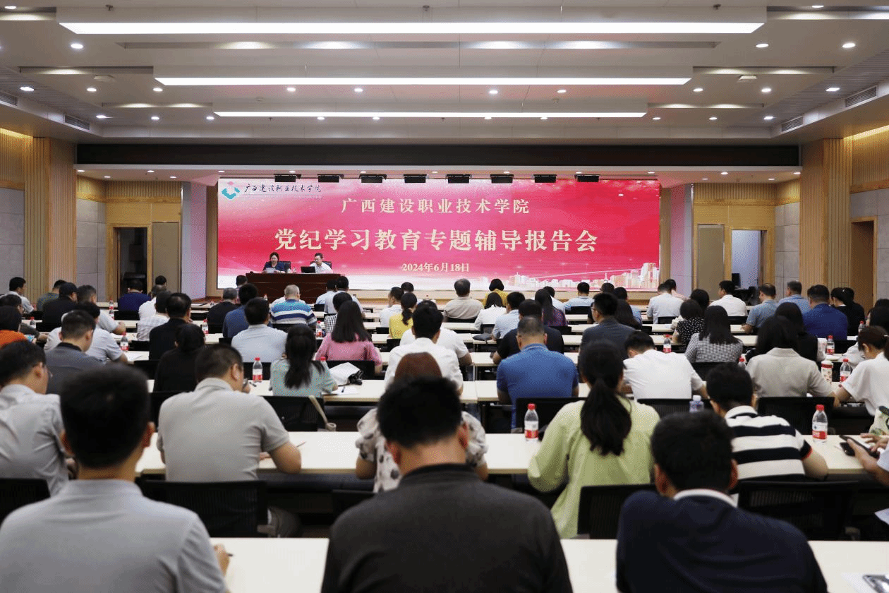 广西建院6月19日讯(党委宣传部 韦植巍)为深入学习贯彻新修订的《中国共产党纪律处分条例》,不断强化全体党员干部的纪律观念和规矩意识,一体推进不敢腐、不能腐、不想腐,6月18日,sports在四教二楼报告厅举办党纪学习教育专题辅导报告会,邀请自治区纪委监委第十监督检查室主任胡忠恒作《以严明的纪律推进党的自我革命》专题辅导。学校党委书记刘晓红主持报告会。报告会现场讲座中,胡忠恒主任围绕什么是党的纪律、为什么必须加强党的纪律建设、...