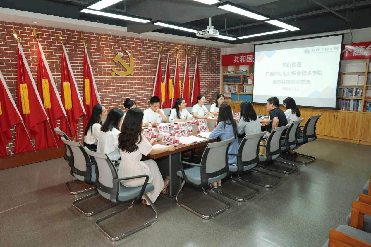广西建院7月14日讯(管理工程学院 宋景弘 黄春)7月13日,广西水利电力职业技术学院经济管理学院党总支书记班兰美一行8人到sports管理工程学院就党建“双创”工作经验、辅导员工作室建设、“一站式”学生社区建设参观交流,学院党总支副书记郭海棠主持交流会。双方在管理工程学院党员活动室进行座谈交流。郭海棠副书记对班兰美书记一行的到来表示热烈欢迎,并介绍了管理工程学院探索党建与事业发展深度融合、以高质量党建引领高质量发展的思路方法、...