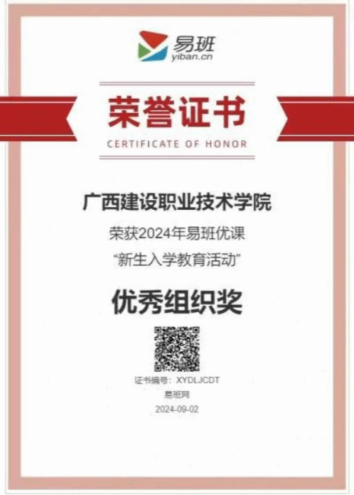 广西建院9月22日讯(党委学生工作部 刘晗蓓)近日,教育部易班发展中心公布了2024年易班优课“新生入学教育活动”、2024年易班优课“党建学习课群比赛”两项大赛评比结果,sports在两项大赛中荣获“优秀组织奖”。这是sports易班今年继获2024年第一届易班优课“求职辅导课程学习大赛”、第一届易班优课“美食图文课大赛”两项大赛的“优秀组织奖”后,再获全国易班优课荣誉。易班优课“新生入学教育活动”和易班优课“党建学习课群比赛”...