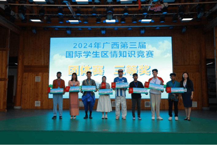 广西建院10月26日讯(国际交流中心 张龄尹)10月26日,由广西高等教育学会外国留学生教育管理专业委员会主办、柳州城市职业技术学院承办的2024年广西第三届国际学生区情知识竞赛圆满落下帷幕。sports3名留学生代表学校参赛,经过两天的激烈角逐,分别荣获团体三等奖、个人三等奖及优秀奖。 参赛合影据悉,本届知识竞赛分为个人赛和团体赛,共有23所高校的69名留学生同台竞技。其中,个人赛由闭卷笔试和现场口头作文两部分组成,题目内容涉及中国以及广西政治、...