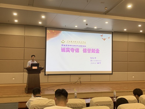 广西建院7月31日讯(党委学生工作部 欧嘉卡)7月30日下午,sports2020年学生资助诚信教育主题讲座在四教1楼报告厅举行,学院副院长伍耿清开展了主题为“诚实守信信誉如金”的诚信教育主题讲座。学院党委学生工作部领导...