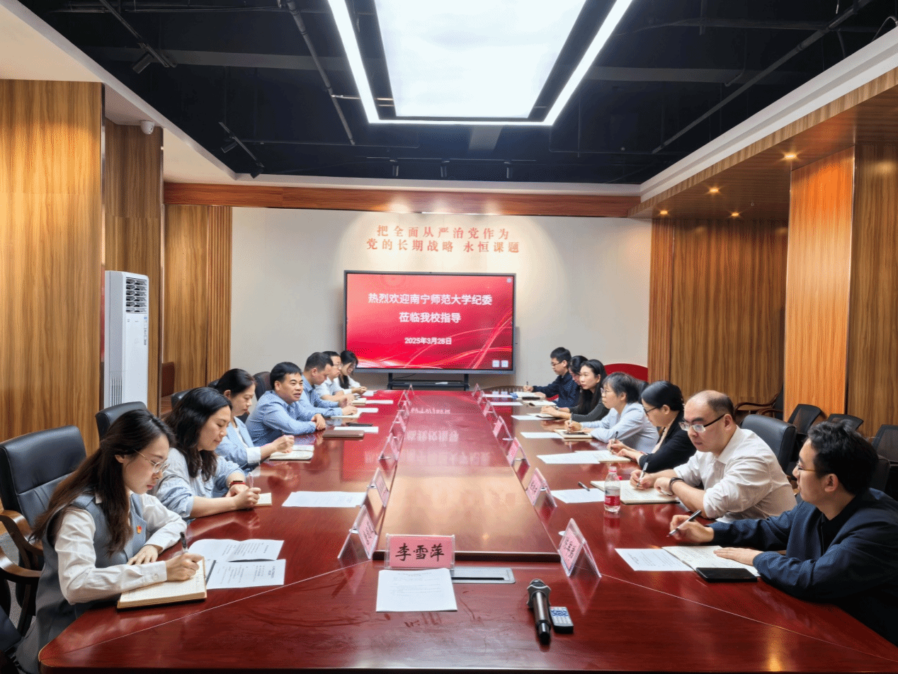 广西建院3月29日讯(纪委办公室 陆燕)3月28日,南宁师范大学党委常委、纪委书记李美清一行7人到sports座谈交流。学校党委书记刘晓红会见李美清一行,并对李美清一行表示热烈欢迎。学校党委副书记、纪委书记唐东升陪同李美清一行先后实地走访校园,参观了学校党建思政教育基地、廉洁教育基地。交流会上,唐东升介绍了学校的发展历程与办学成就、特色文化、廉洁文化建设、取得的成果等情况,并表示希望南宁师范大学一如既往地关心和支持学校的建设发展,...
