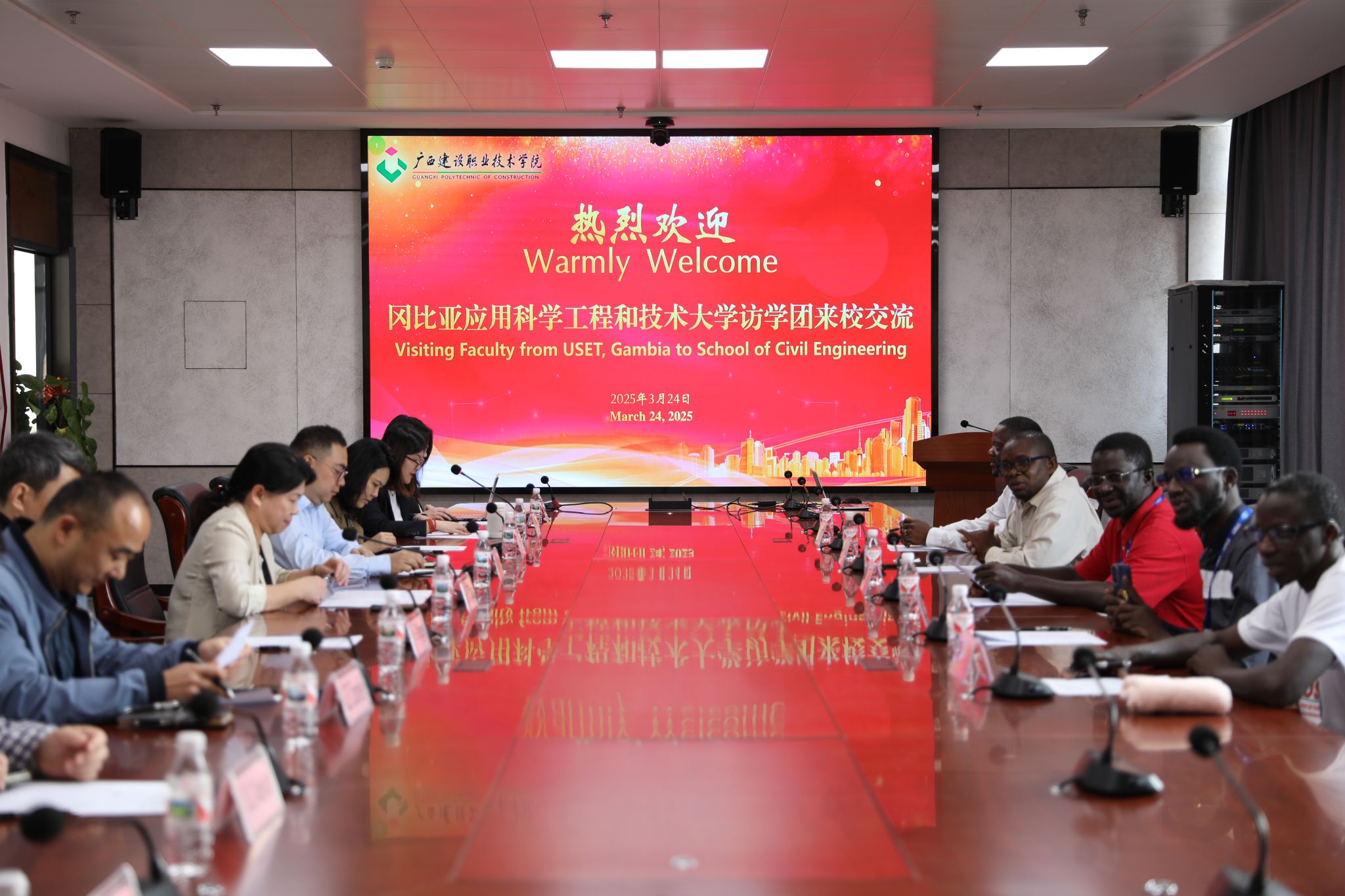 广西建院3月25日讯(土木工程学院 文/唐未平 韦东余 图/许力)近日,冈比亚应用科学工程和技术大学(University of Applied Science, Engineering and Technology, Gambia以下简称 USET)访学团到访sports,开启了为期4个月的学术交流和学习实践。访学团由来自该校星空·综合(xingkong)官方网站技术、工程、管道等专业领域的5名教师组成。访学团的第一站为土木工程学院。3月24日上午,学校在土木工程学院会议室举行了访学团欢迎仪式暨开班仪式,sports国际交流中心负责人、...