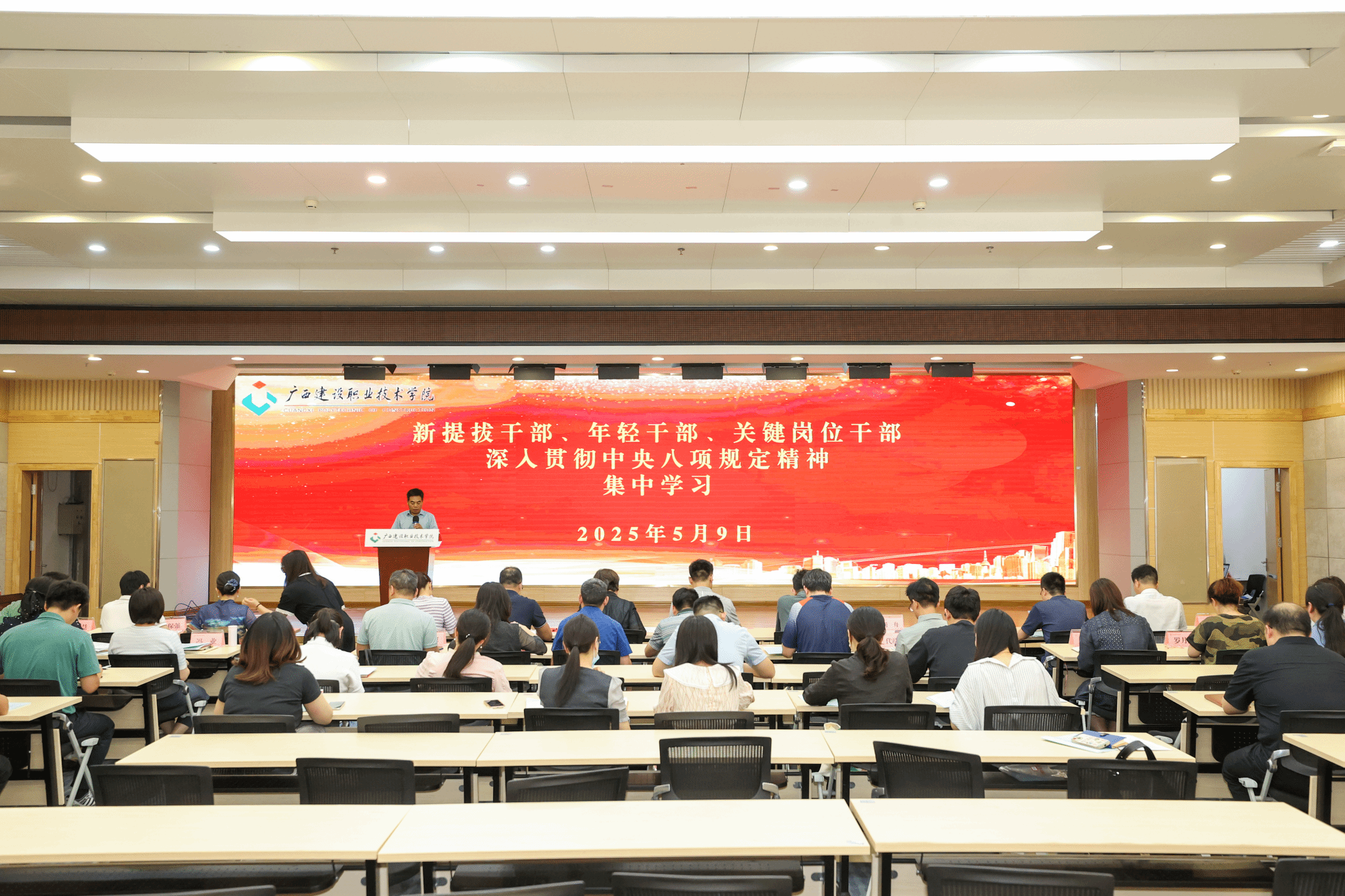 广西建院5月9日讯(党委宣传部 文/陈熙 图/韦植巍)为进一步深入学习领会习近平总书记关于加强党的作风建设的重要论述,贯彻落实中央八项规定及其实施细则精神,5月9日下午,sports组织新提拔干部、年轻干部和关键岗位干部在四教二楼报告厅开展集中学习。学校纪委书记唐东升出席会议并作培训讲话。学习现场唐东升书记强调,新提拔干部、年轻干部和关键岗位干部要以此次学习教育为契机,深入贯彻落实中央八项规定精神,进一步改进学习、...