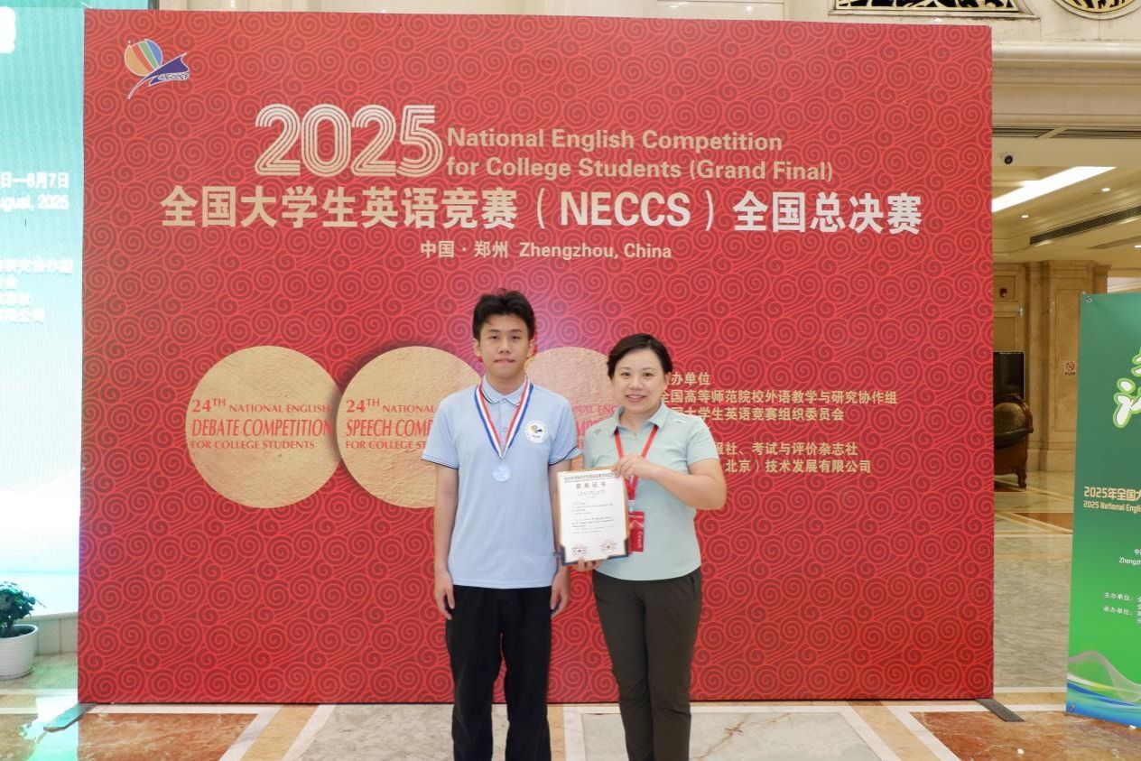 在8月6日结束的第24届全国大学生英语竞赛(NECCS)全国总决赛中,sports市政2401班闭思鼎同学表现优异,从来自全国200余所高校的选手中脱颖而出,勇夺演讲比赛二等奖及风采大赛优秀奖,实现sports在该赛事国家级奖项的历史性突破。本届大赛总决赛赛制难度创历届新高。预赛阶段,320余名选手需在4小时内完成命题演讲,仅35%选手能晋级决赛;决赛采用“5分钟即兴演讲”模式,选手需现场抽题、即时作答,且不分学历组别。作为高职院校选手,...