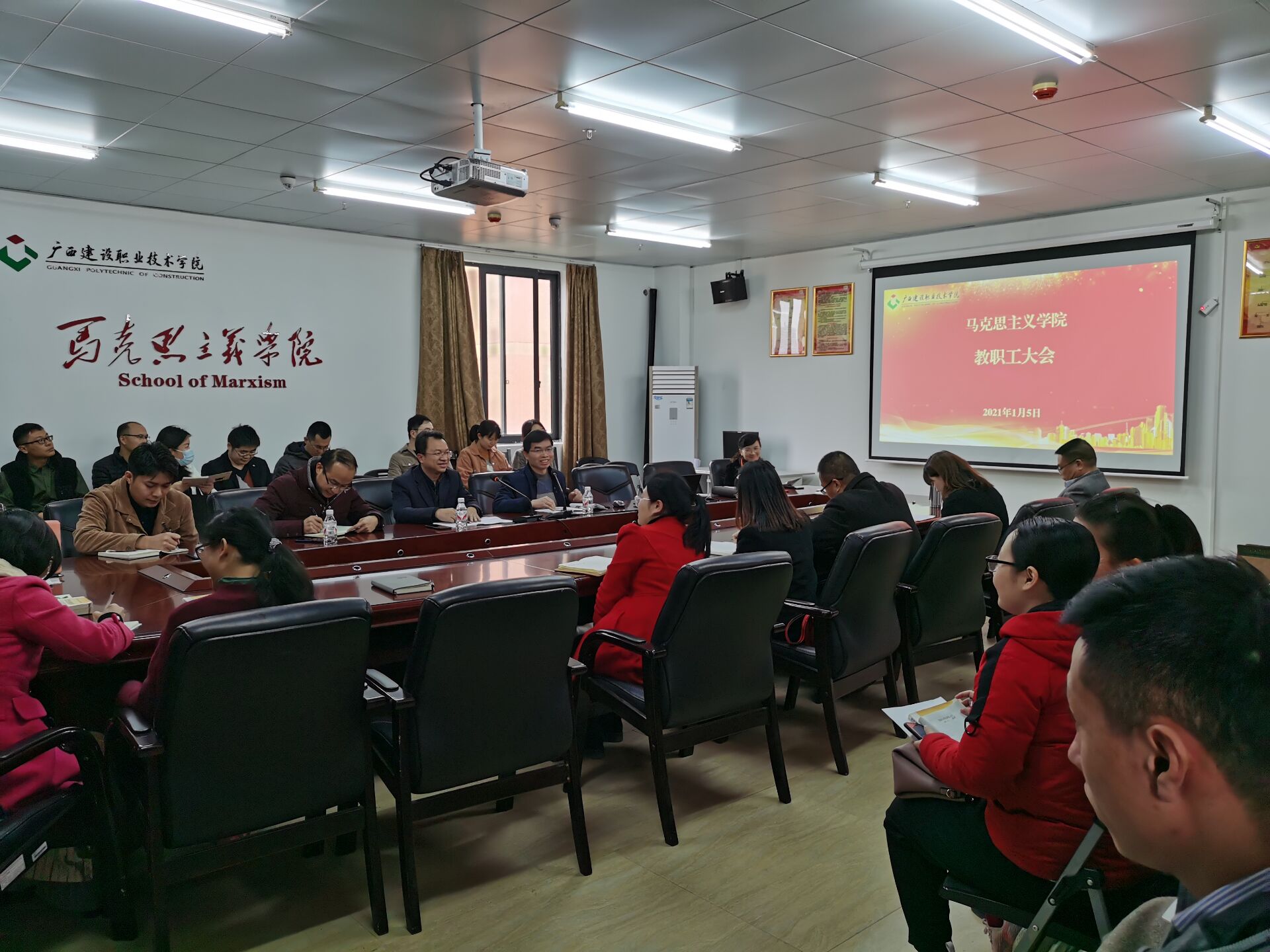 广西建院1月6日讯(马克思主义学院 甘麒燕)1月5日下午,sports马克思主义学院在3教801召开教职工大会。学校副院长谢东出席会议并召开思政课教师座谈会,会议由马克思主义学院副院长赵胜营(主持工作)主持,学校党委组...
