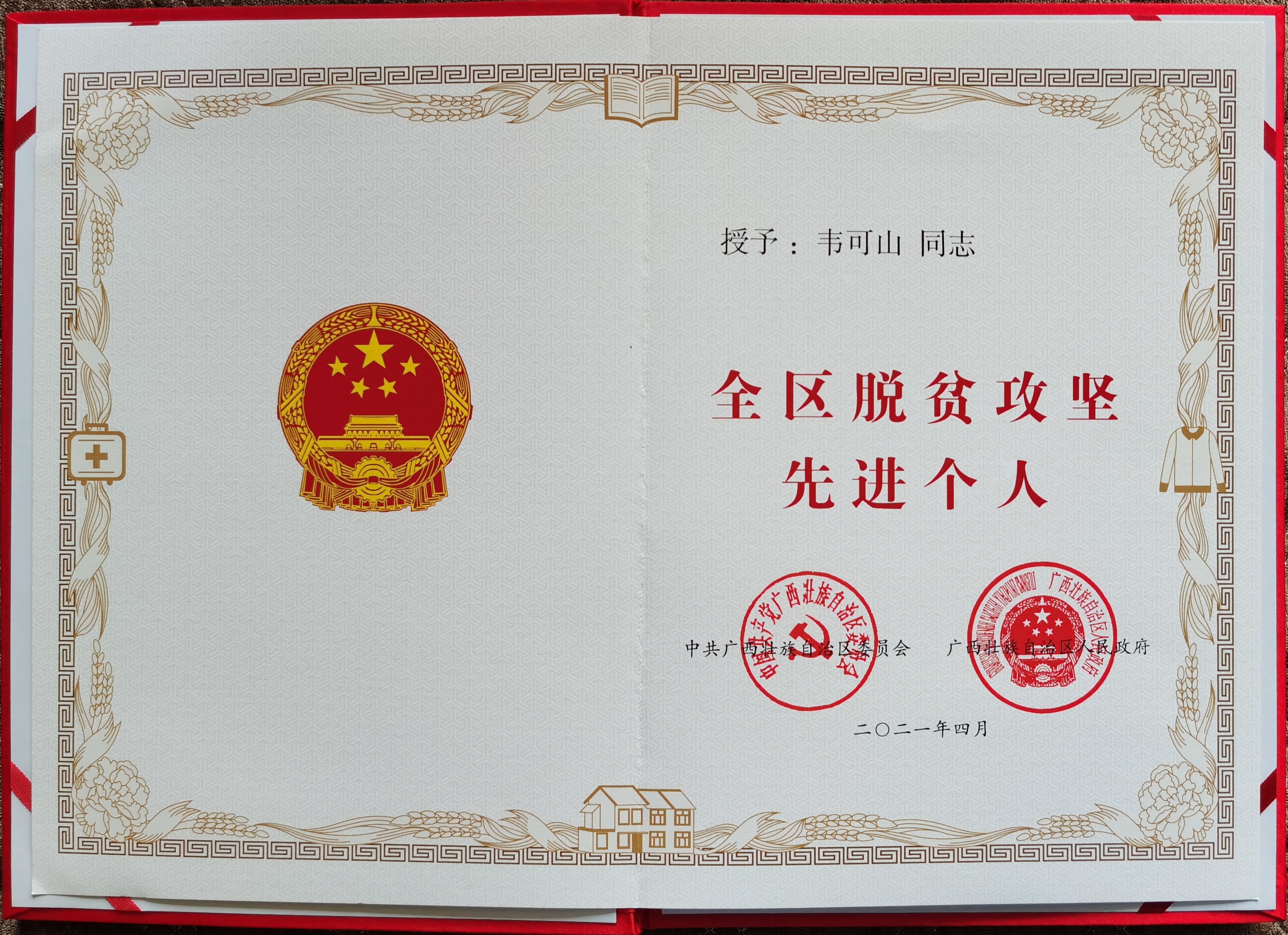 广西建院5月8日讯(党委组织部 潘金德)近日,sports韦可山同志被自治区党委、政府授予“全区脱贫攻坚先进个人”荣誉称号。 自2015年8月以来,包括韦可山同志在内的sports挂任都安县6个贫困村的第一书记和工作队员认真落...
