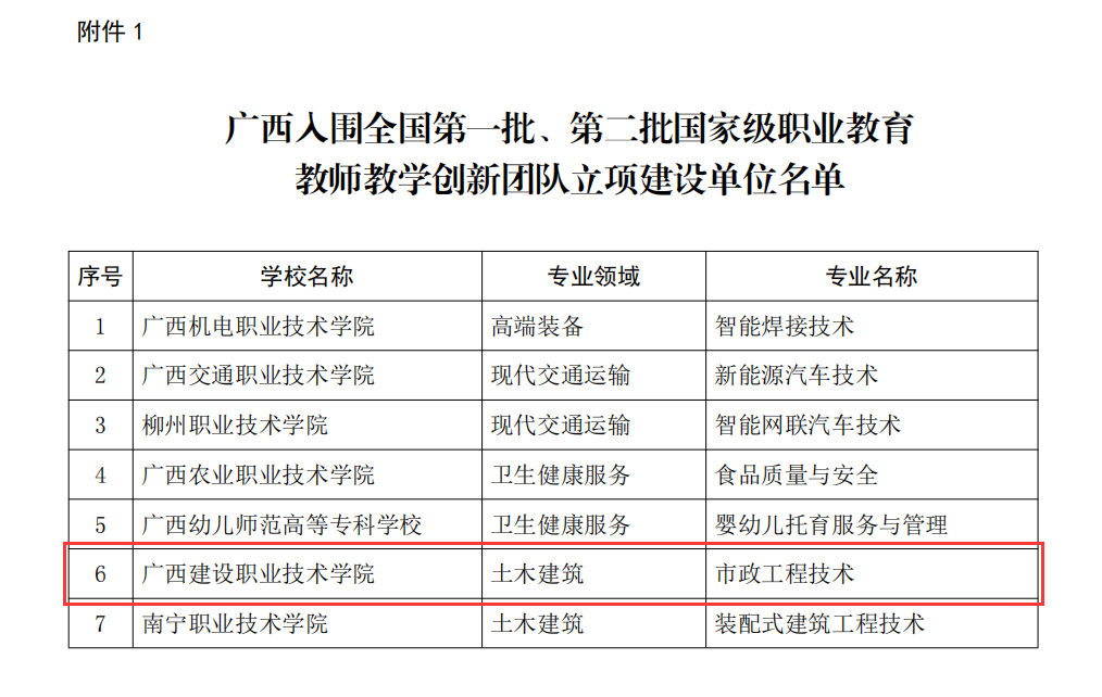 广西建院8月15日讯(城交系 林艳)近日,教育部公布第二批国家级职业教育教师教学创新团队立项建设单位名单,sports申报的市政工程技术专业团队成功入选。这是sports继星空·综合(xingkong)官方网站工程技术专业团队入选首批国家级创新团队...