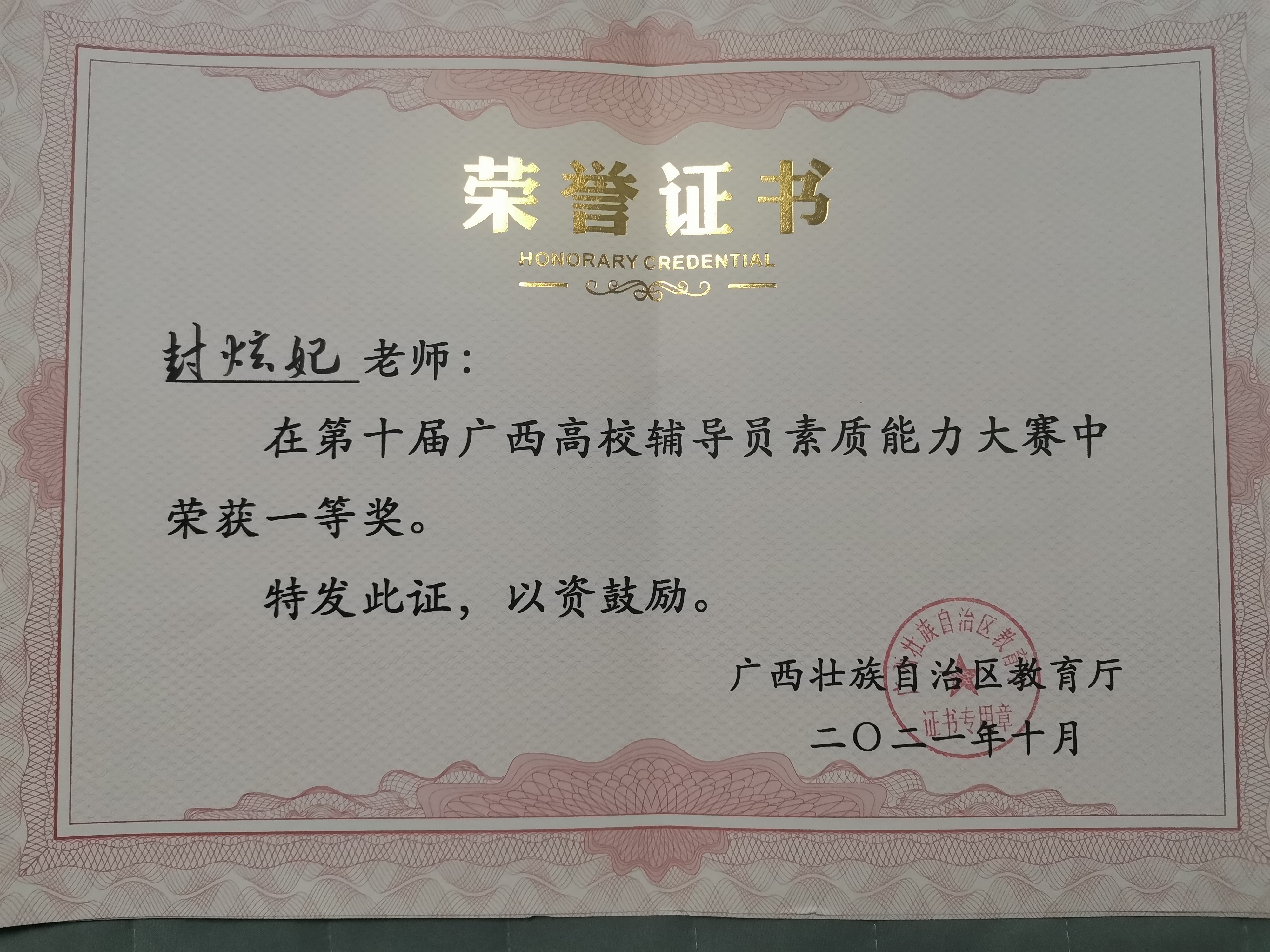 广西建院10月24日讯(管理工程学院 郭海棠)10月20日至22日,第十届广西高校辅导员素质能力大赛在广西师范大学顺利落下帷幕,sports管理工程学院辅导员封炫妃、星空·综合(xingkong)官方网站与规划学院辅导员冯光帆双双荣获大赛一等奖,其中封炫...