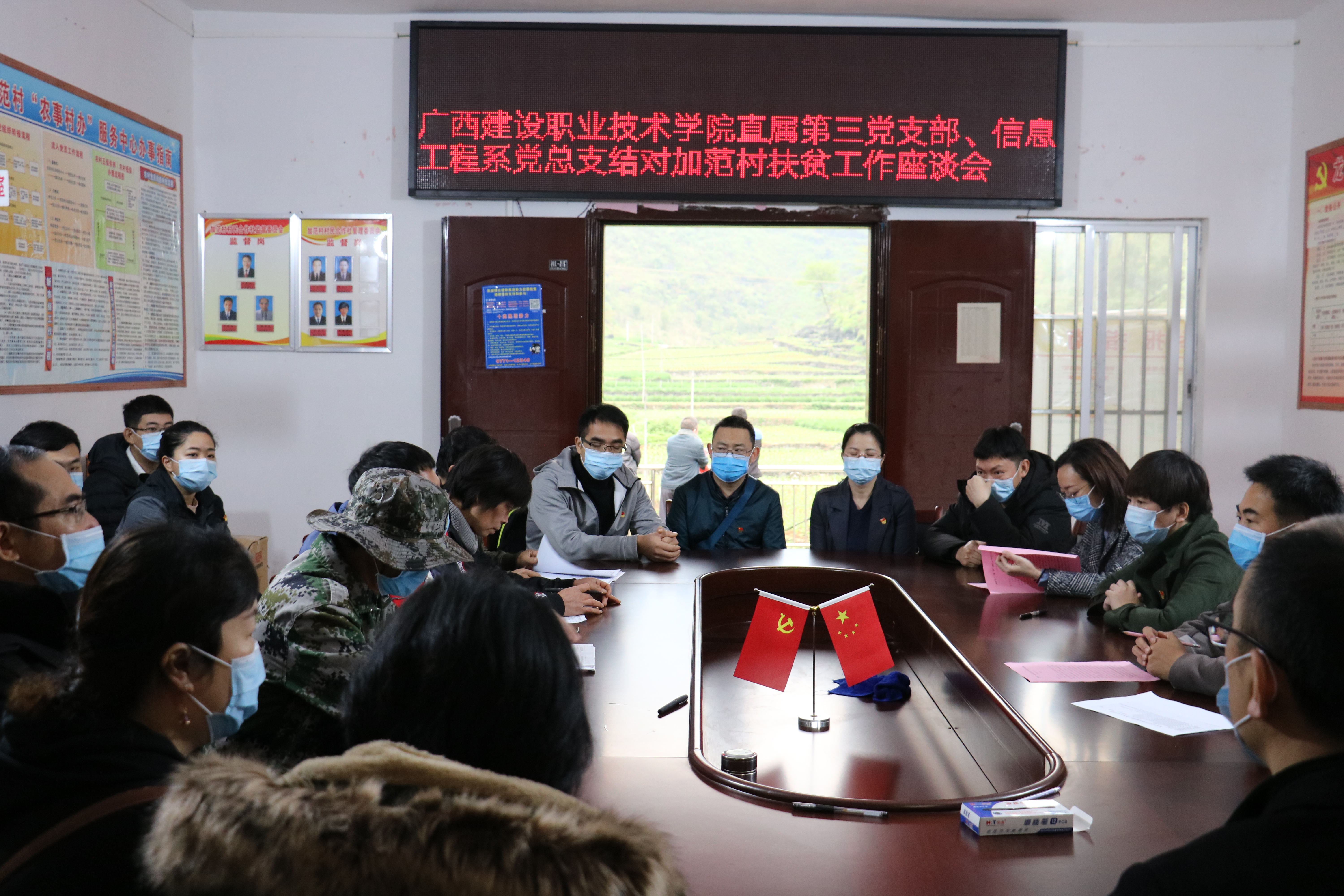 广西建院4月3日讯(党委学生工作部 黄运堪)为贯彻落实习近平总书记在决战决胜脱贫攻坚座谈会上的讲话精神,按照学校扶贫工作部署,4月2日,学院纪委书记唐东升率领信息工程系党总支和直属第三党支部的党员干部赴都安...