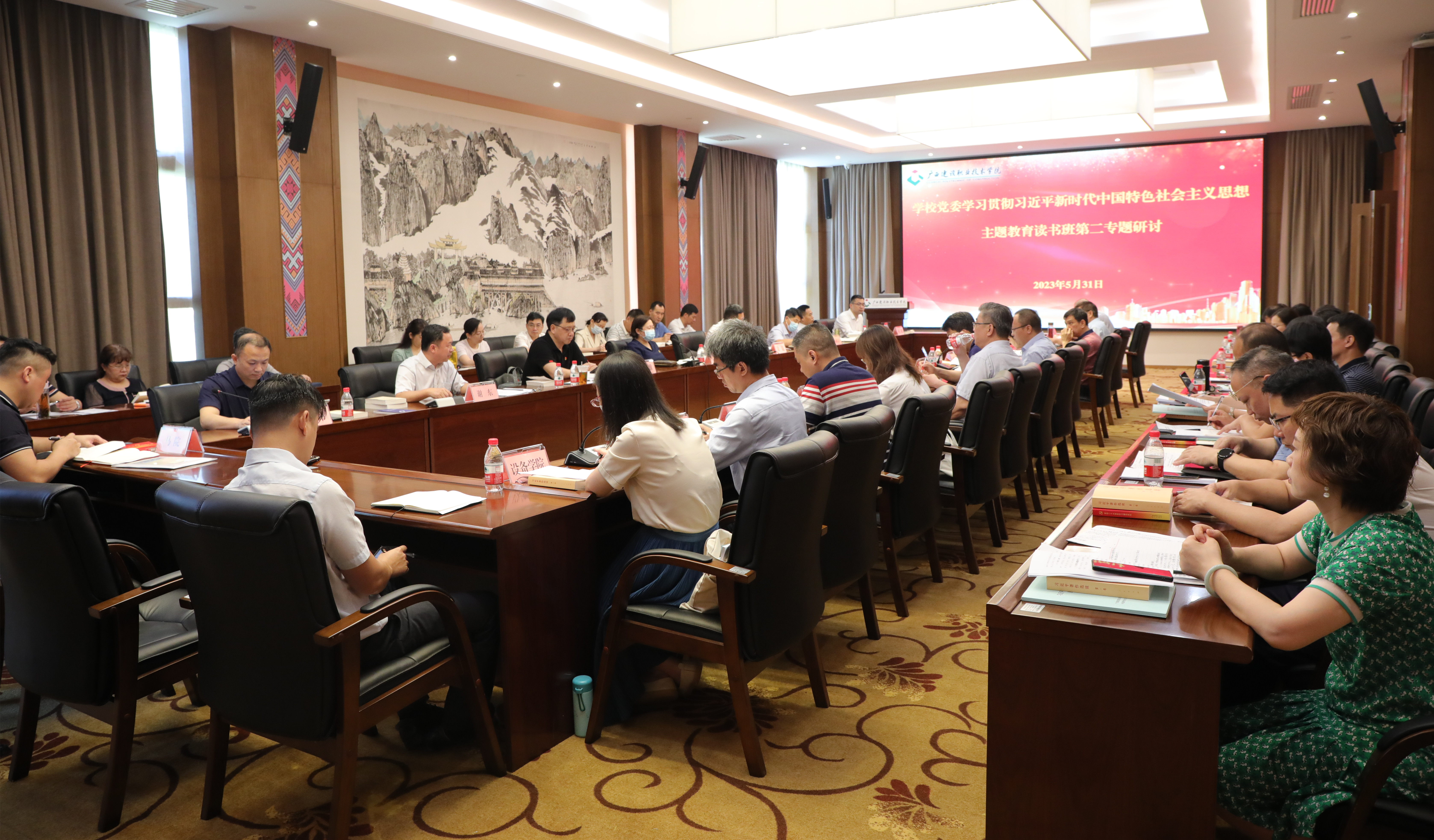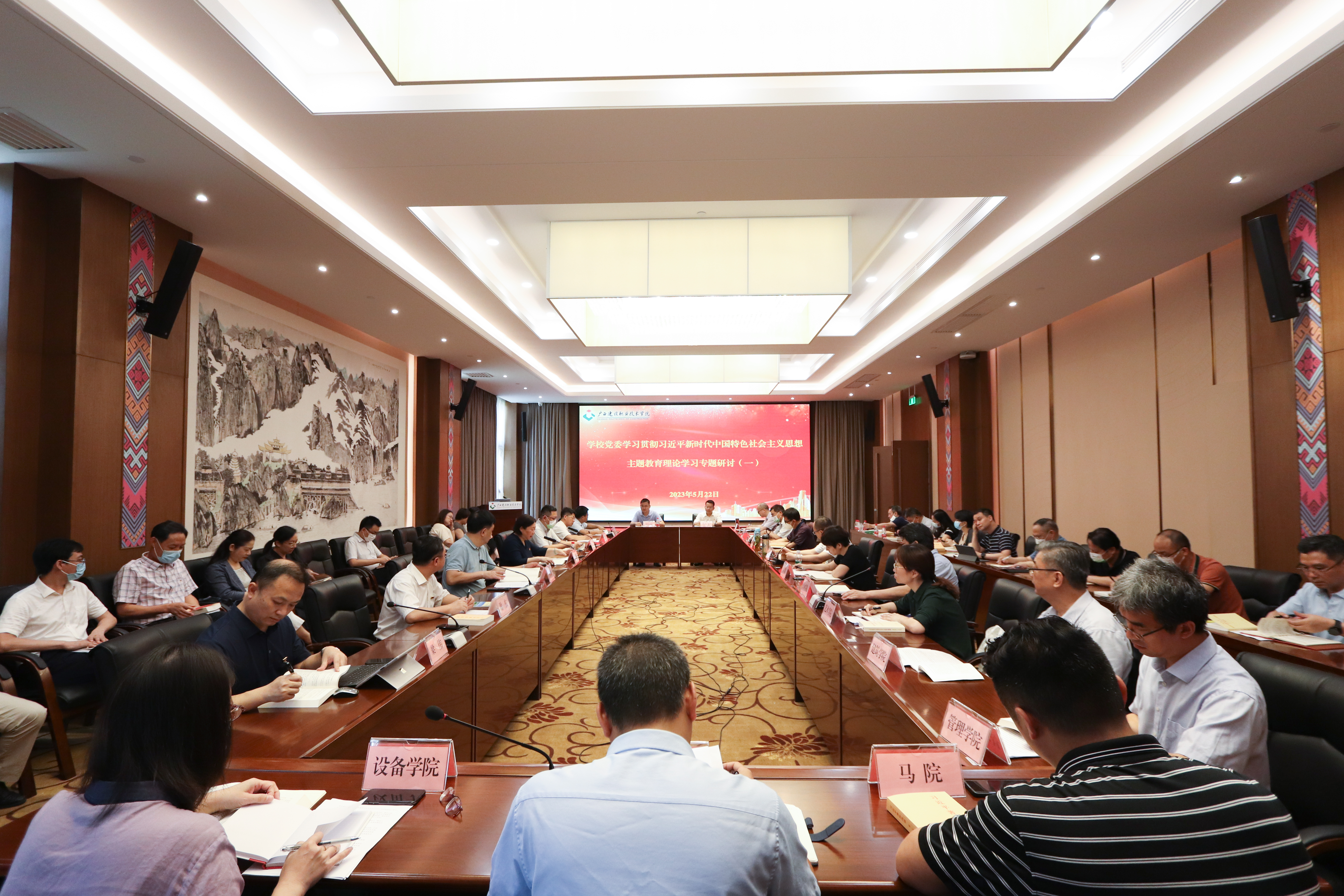 广西建院5月23日讯(文/党委宣传部 陈熙 图/党委宣传部 韦植巍 记者团 杨贵维)5月22日,sports开展学校党委学习贯彻习近平新时代中国特色社会主义思想主题教育读书班第五专题学习。学习分为集中学习、集中自学、个人自...