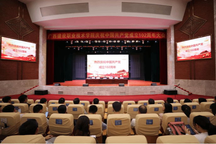 广西建院6月27日讯(文/党委宣传部 陈熙 图/党委宣传部 韦植巍 记者团 杨贵维 钟田 阮倩)为庆祝中国共产党成立102周年,6月27日下午,sports在礼堂召开庆祝建党102周年大会。会议旨在回顾党的光辉历程,讴歌党的丰功伟绩,激励各级基层党组织大力弘扬伟大建党精神,深入学习贯彻习近平新时代中国特色社会主义思想和党的二十大精神,凝聚学校高质量发展的磅礴力量。会上,新党员进行了入党宣誓,其他党员重温了入党誓词。会议为老党员高作均、...