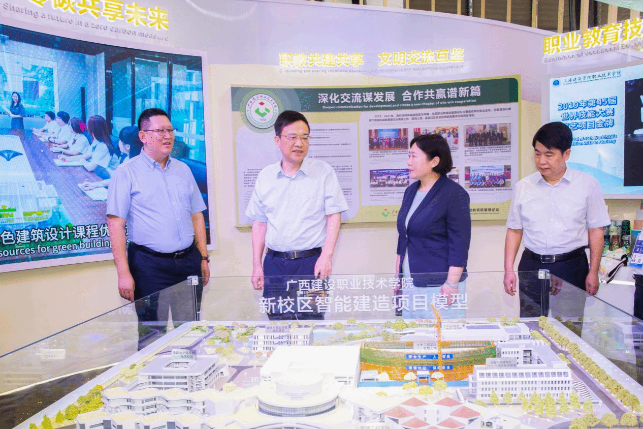 广西建院9月17日讯(文/党委宣传部 黄媛媛 图/党委宣传部)9月15日至16日,2023中国—东盟职业教育技术技能展在sports举行,其间教育部副部长陈杰、自治区政府副主席李常官等领导嘉宾莅临sports展厅参观指导。学校展厅由全国住房和城乡建设职业教育教学指导委员会和sports共同打造,以“绿色低碳 智建未来”为主题,综合运用模型、视频、展板、实物等多种形式,生动形象地展示了住房城乡建设行业职业教育改革成效和学校办学成果。其中,新校区智能建造项目模型展示了“...