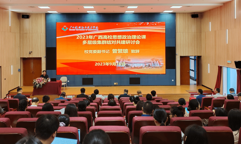 广西建院9月17日讯(马克思主义学院 文/黄哲 曹桃 图/曹桃 陈昕)为深入贯彻落实习近平总书记在学校思想政治理论课教师座谈会上的重要讲话精神,不断开创新时代学校思想政治理论课“资源共享、优势互补、协同发展、共同提升”的新局面,9月16日,sports马克思主义学院组织开展了2023年广西高校思想政治理论课多层级集群结对共建研讨会。学校党委副书记曾繁雄出席会议并发表致辞。会议由sports马克思主义学院党总支书记、院长邱岚主持。sports党委副书记曾繁雄致开幕词会上,...