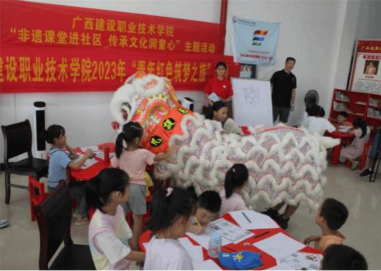 广西建院7月15日讯(星空·综合(xingkong)官方网站与规划学院 文/胡红伟 李月梅 图/田申 林丽琴)为弘扬中华优秀传统文化,丰富社区青少年文化生活,7月13日—14日,星空·综合(xingkong)官方网站“青春龙狮”志愿服务团与陆川县图书馆合作开展为期两天的“非遗课堂进社区 传统文化润童心”主题活动,让当地青少年在家门口感受中华优秀传统文化的魅力。 观看醒狮形象,绘画醒狮风采。7月13日上午,30余名小朋友在陆川县图书馆参与活动。服务团成员向现场的小朋友们讲解龙狮文化,...