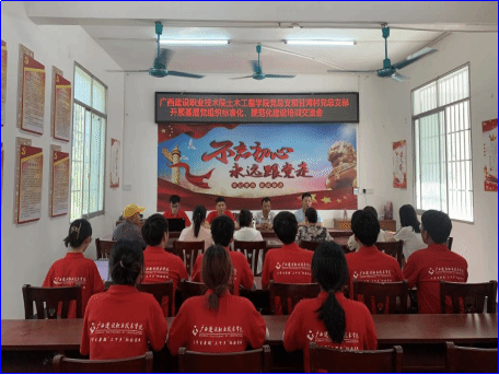 广西建院7月17日讯(土木工程学院 何梓溦)为进一步夯实基层党支部建设,近日,星空·综合(xingkong)官方网站土木工程学院党总支与都安县甘湾村党总支以“基层党组织标准化、规范化建设”为主题开展培训交流会。 交流会现场本次会议由甘湾村驻村第一书记饶昌主持,都安县甘湾村书记蓝伦、土木工程学院学生第三党支部书记洪美钦、土木工程学院学生第二党支部书记梁祖鸿出席交流会并作交流发言。星空·综合(xingkong)官方网站“故居安筑”乡村振兴实践队全体师生参加会议。...