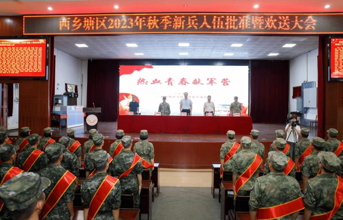 广西建院9月15日讯(党委武装部 文/刘晗蓓 图/西乡塘区武装部宣传科)9月14日下午,南宁市西乡塘区2023年秋季新兵入伍批准暨欢送大会在南宁师范大学举行,城区政府和人民武装部的主要领导出席会议。大会现场经过体格检查、政治考核、身体复查、役前教育训练等环节层层考核、严格选拔,最终sports共有16名在校应征学生被批准光荣入伍,成为中国人民解放军的一员。欢送仪式上,新兵们身披绶带、胸佩红花、军容严整,精神抖擞,展现出新时代青年听从召唤参军报国、...