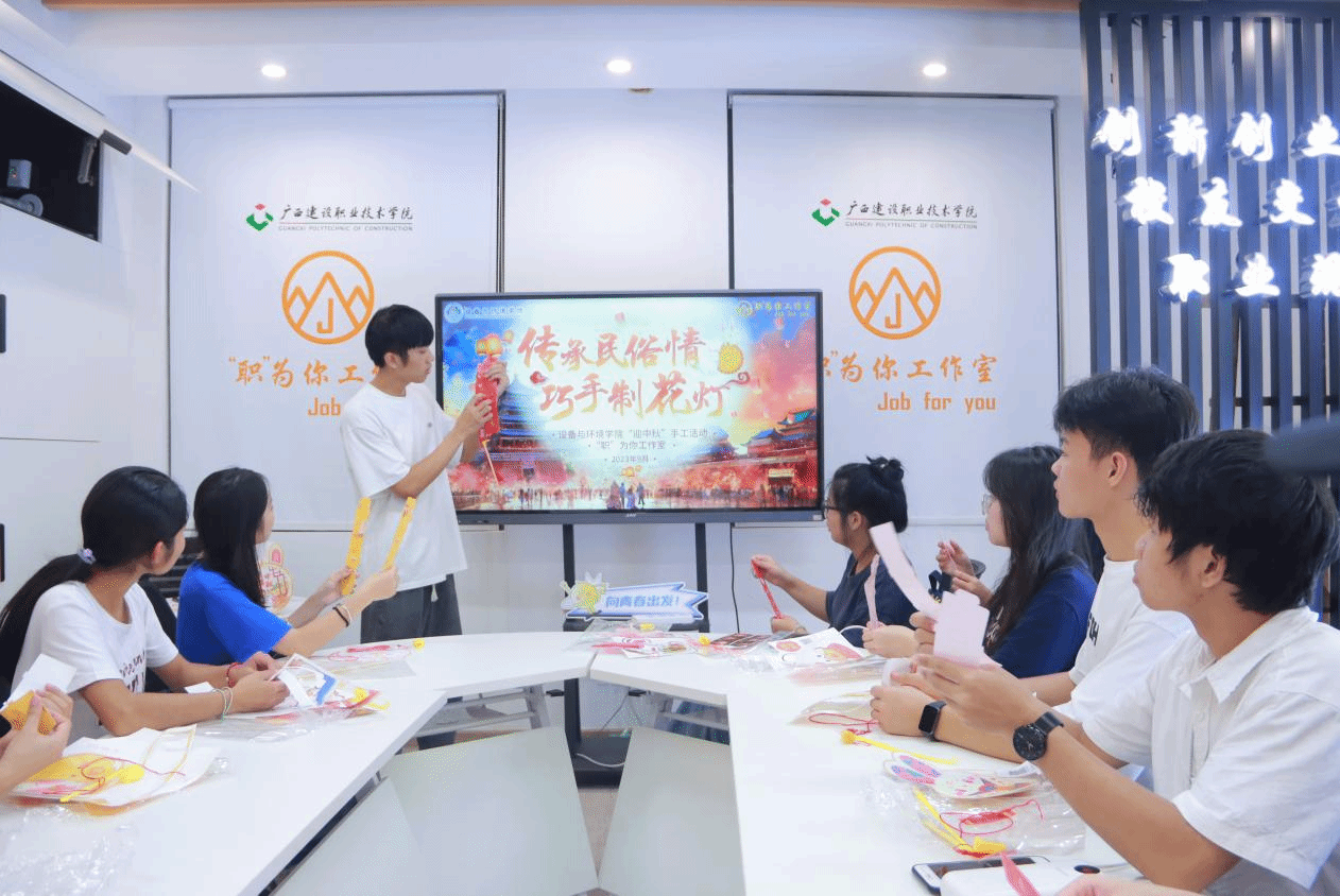 广西建院9月26日讯(设备与环境学院 文/徐晓雪 图/黄莹静)为进一步丰富学生校园文化生活,弘扬中华民族传统节日文化。9月25日晚,设备与环境学院学生党支部在“职”为你工作室开展了“传承民俗情,巧手制花灯”中秋节主题活动。活动中,徐静老师通过提问的方式引导同学们分享有关中秋佳节的文化常识,让大家知晓中秋节的来历、花灯的历史渊源等。随后将制作花灯的材料分发下去,同学们迫不及待地按照老师讲解的步骤制作起来。经过一番努力,...