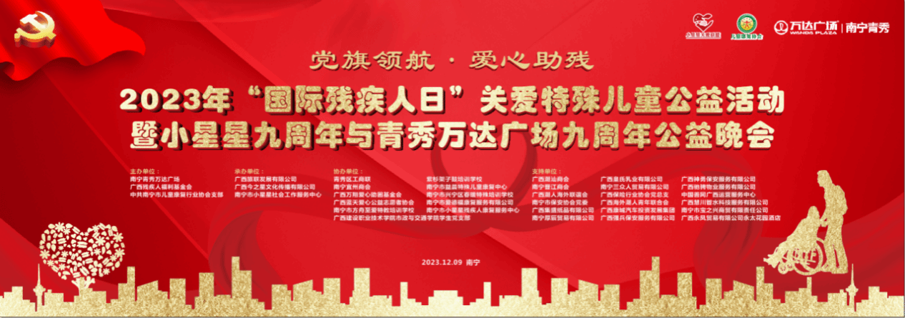 广西建院12月9日讯(市政与交通学院 刘晗蕾)12月3日是第32个“国际残疾人日”,市政与交通学院学生党支部作为协办单位组织26名学生入党积极分子参与“党旗领航 爱心助残”2023年“国际残疾人日”关爱特殊儿童公益活动暨小星星九周年与青秀万达广场九周年公益晚会。本次活动由南宁市儿童康复行业协会党支部、广西残疾人福利基金会等单位主办,南宁市小星星社会工作服务中心等单位承办。公益晚会海报公益晚会现场氛围热烈,合唱、舞蹈、...
