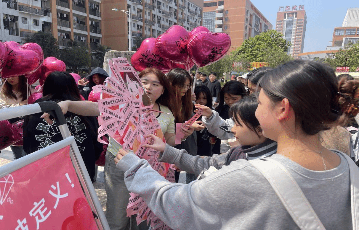 广西建院3月6日讯(设备与环境学院 文/毛森森 石青平 图/吴颖霞)为鼓励同学们勇敢做自己,挣脱心灵束缚,打破固有偏见,培养自由健康的心灵,3月5日,sports设备与环境学院党建工作室在学校一食堂门口开展主题为“撕掉标签枷锁,做最好的自己”的女生节活动。活动现场,同学们勇敢地撕掉在“人形立牌”上最触动自己、最想摆脱的“标签”,并在便利贴上写下鼓励自己的话,以美好的话语消除偏见。当粘贴在“人形立牌”上的标签一张张的被撕掉,...