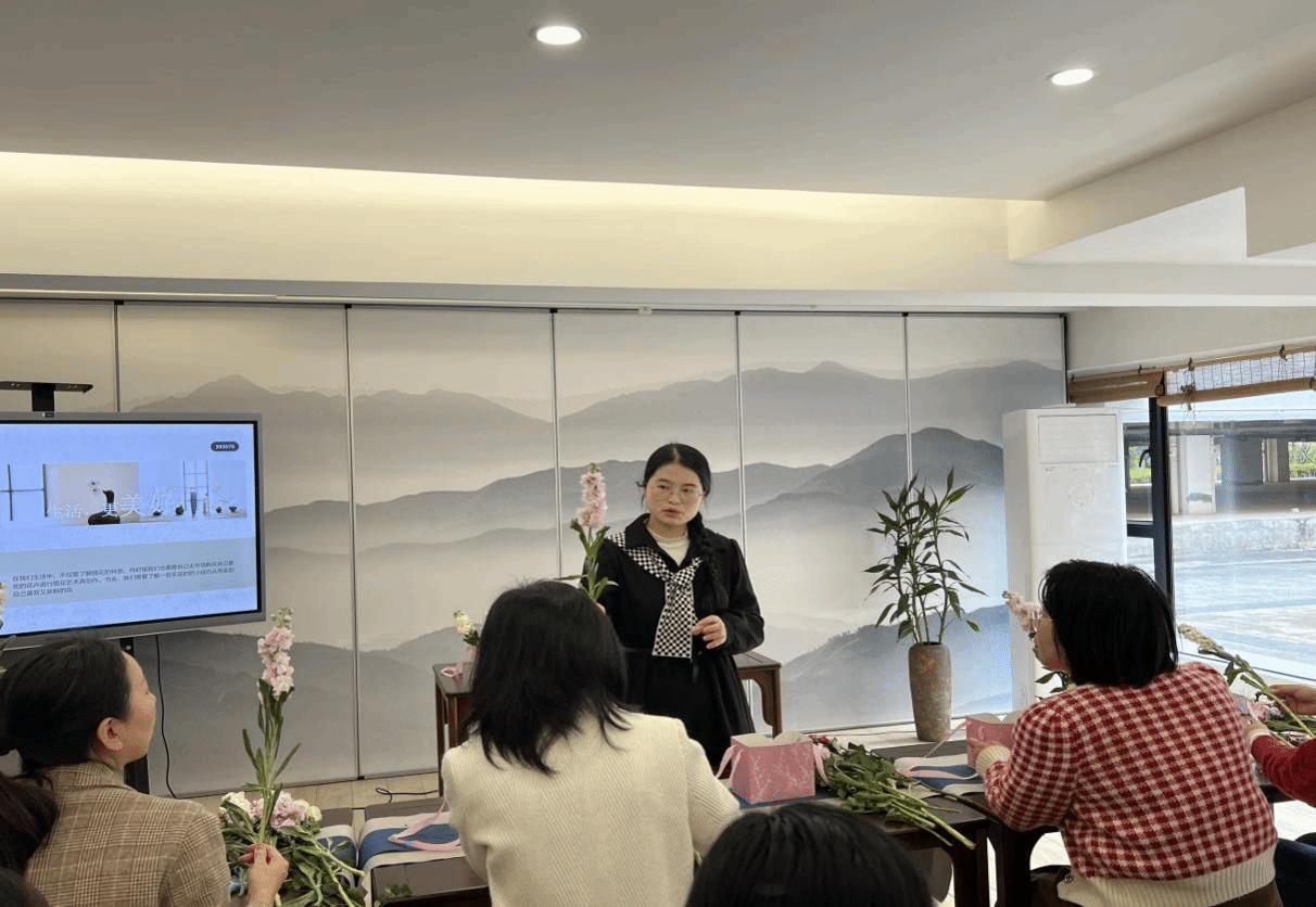广西建院3月8日讯(管理工程学院 封炫妃 宋景弘 黄春)为庆祝第114个“三八”国际劳动妇女节,3月7日下午,“一站式”学生社区茶艺文化传习基地开展妇女节专题花艺体验课。花艺课现场课堂伊始,花艺老师耐心细致地从花的选择、色彩的搭配、造型的设计等方面进行了详细讲解。女教师们精心挑选自己心仪的花型和颜色,在花艺老师的指导示范下,用心构思,精心设计,创作属于自己的花束。 精心修剪、巧妙搭配,老师细心指导,大家用心制作,...