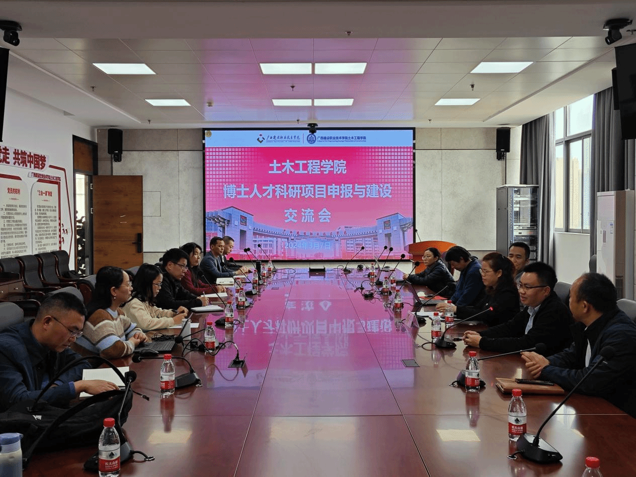 广西建院3月9日讯(土木工程学院 陈思羽)为优化科研项目的申报与管理,土木工程学院于3月7日在第五教学楼10楼会议室召开博士人才科研项目申报与建设交流会。会议邀请了原中国科技开发院广西分院副院长谢刚教授、华蓝设计(集团)有限公司顾问副总工程师罗月静教授担任主讲嘉宾。土木工程学院全体领导班子成员,土木工程学院全体博士参会,并邀请管理工程学院、信息工程学院等二级学院的部分博士参与交流。谢刚教授以“广西科技计划项目构造与申报实务”...