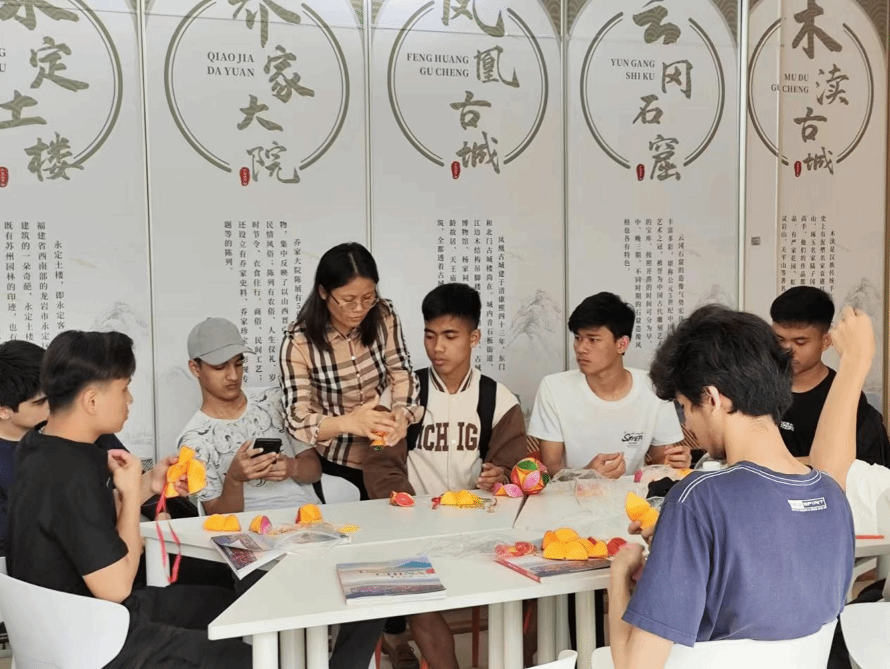 广西建院5月18日讯(市政与交通学院 文/黄华 图/蓝彬)5月16日,学校在学生社区非遗工作坊开展共话民传课堂,组织留学生体验中国传统“非遗”项目——做绣球,让留学生近距离感受中国文化魅力。活动开始,梁金来老师带领留学生参观了学生社区非遗工作坊,并对部分非遗项目作了简要介绍,重点介绍了具有广西风情的非物质文化遗产——靖西绣球的来历、文化内涵、传统寓意、制作工艺和文化价值等。在高杨杨老师的带领下,大家制作绣球,...