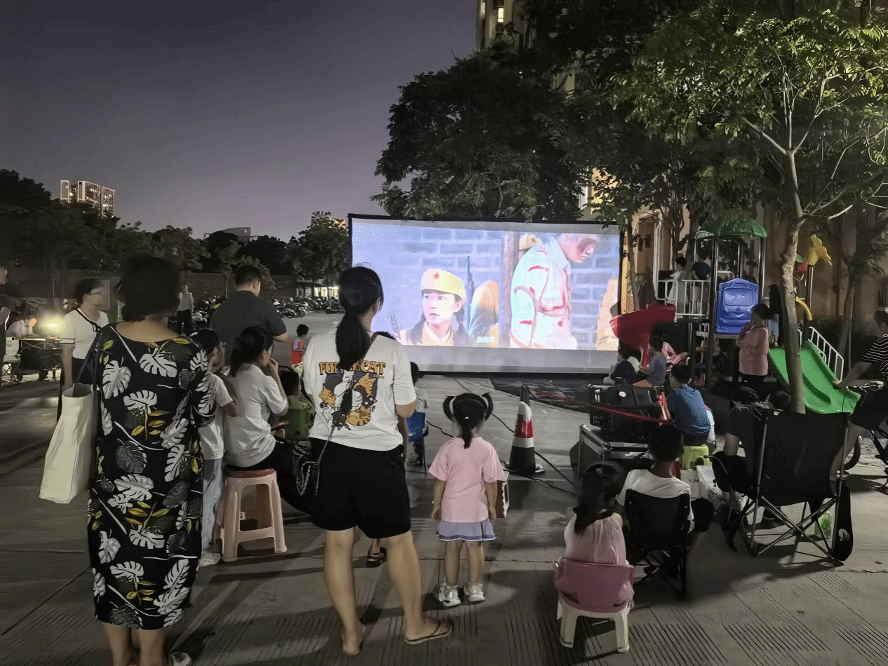 广西建院8月14日讯(工会 黄军萍)为丰富教职工精神文化生活,营造和谐温馨的教职工住宅小区生活氛围,推进爱国主义教育进小区,8月6日晚,学校工会联合南宁市融媒体中心放映队在建苑小区开展“红色电影进小区 爱国情怀永传承”主题观影活动,组织教职工走进“家门口”红色影院。 随着夜幕缓缓降临,红色电影《浴血大别山》在大家的期待中拉开帷幕。不少教职工带来小凳子观看,也有教职工家属散步路过驻足观看。精彩的画面,感人的情节,...