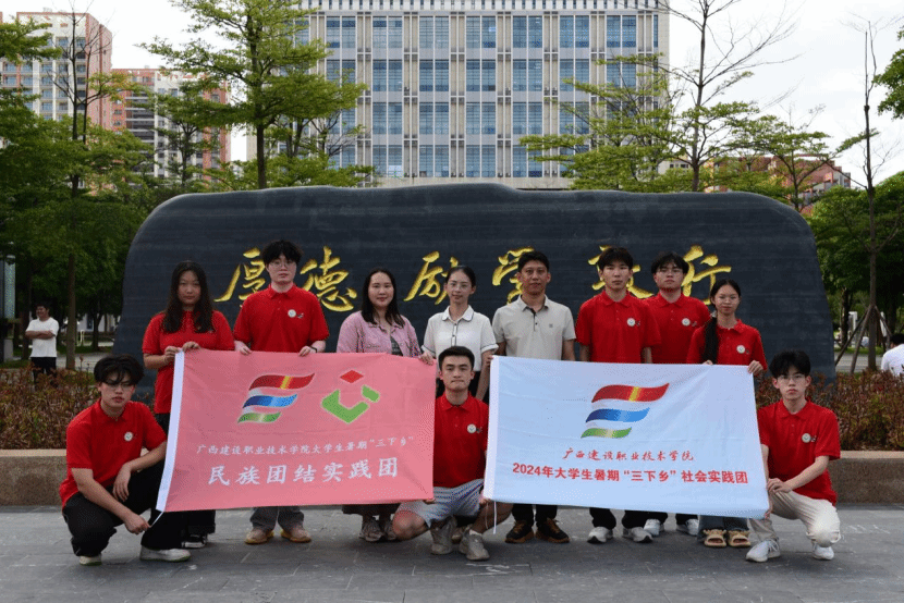 广西建院8月14日讯(土木工程学院 韦东余)为引导当代大学生争做民族团结的簇拥者、传播者和实践者,近日,星空·综合(xingkong)官方网站“筑建同心桂乡”民族团结实践团赴河池市2县5村开展以民族团结为主线,传承红色基因和乡村振兴为支线,“五个一”实践任务为重要抓手的大学生“三下乡”社会实践活动。 实践团出征前合影传习民族历史 筑就民族信仰实践团先后到东兰县革命烈士纪念塔、韦国清故居、苏托红军渡参观学习,缅怀革命先烈,重温入党誓词;...