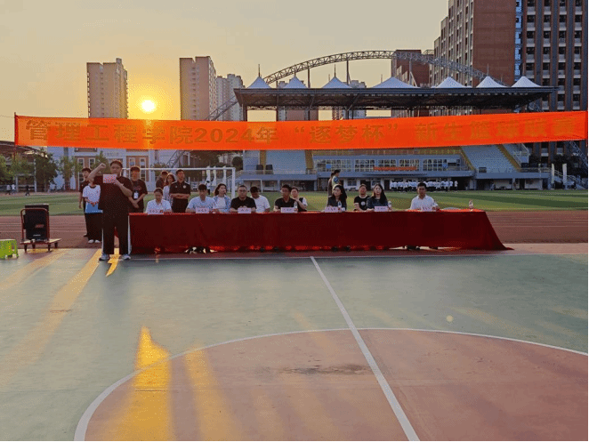 广西建院10月12日讯(管理工程学院 文/封炫妃 图/梁甜甜 杨秋蓉)青春不打烊,篮球梦启航。10月11日下午,管理工程学院2024年“逐梦杯”新生篮球赛正式开幕。学院党总支书记、副院长(主持行政工作)代端明,党总支副书记郭海棠,副院长谢华出席开幕式。 开幕式现场 威龙醒狮协会暖场演出开幕式在舞狮队的表演中拉开了序幕。代端明书记致开幕词,他指出,新生篮球赛是凝聚班级力量、展示班级风采的平台,希望同学们以本次篮球赛为契机,...