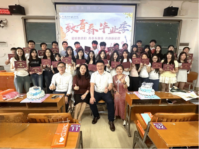 亲爱的2025届毕业生党员同志们:你们好!木棉灼灼燃赤帜,骊歌浩浩壮云程!在这八桂大地万物竞秀的仲夏时节,在绿意葱茏、书香氤氲的建院校园,我们满怀欣慰与不舍,目送你们即将如大鹏展翅,飞向辽阔的苍穹。值此离别之际,谨向你们致以衷心的祝贺和诚挚的祝福!祝贺你们圆满完成学业,开启人生新篇;更祝贺你们在党旗下淬炼成长,初心如磐,信仰弥坚! 回望在广西建院的奋斗岁月,你们在党组织的精心培育下,在“厚德 励学 敦行”...