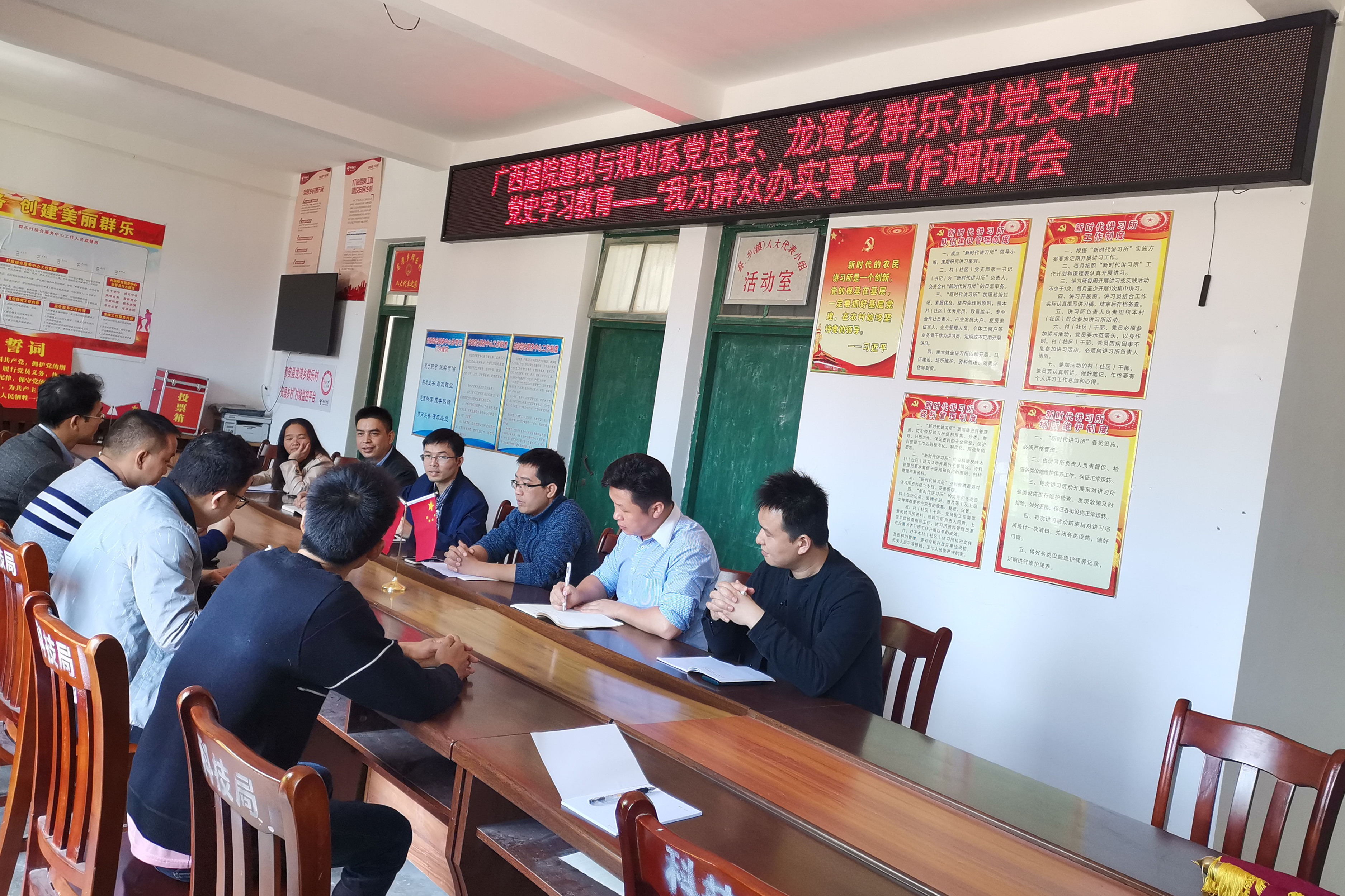 广西建院5月1日讯(星空·综合(xingkong)官方网站与规划系 杨果)党史学习教育出发点在受教育,落脚点在办实事。4月29日,星空·综合(xingkong)官方网站与规划系党总支书记邱岚等一行5人前往都安县龙湾乡群乐村开展党史学习教育。 该系党总支是群乐村党支部的扶贫...