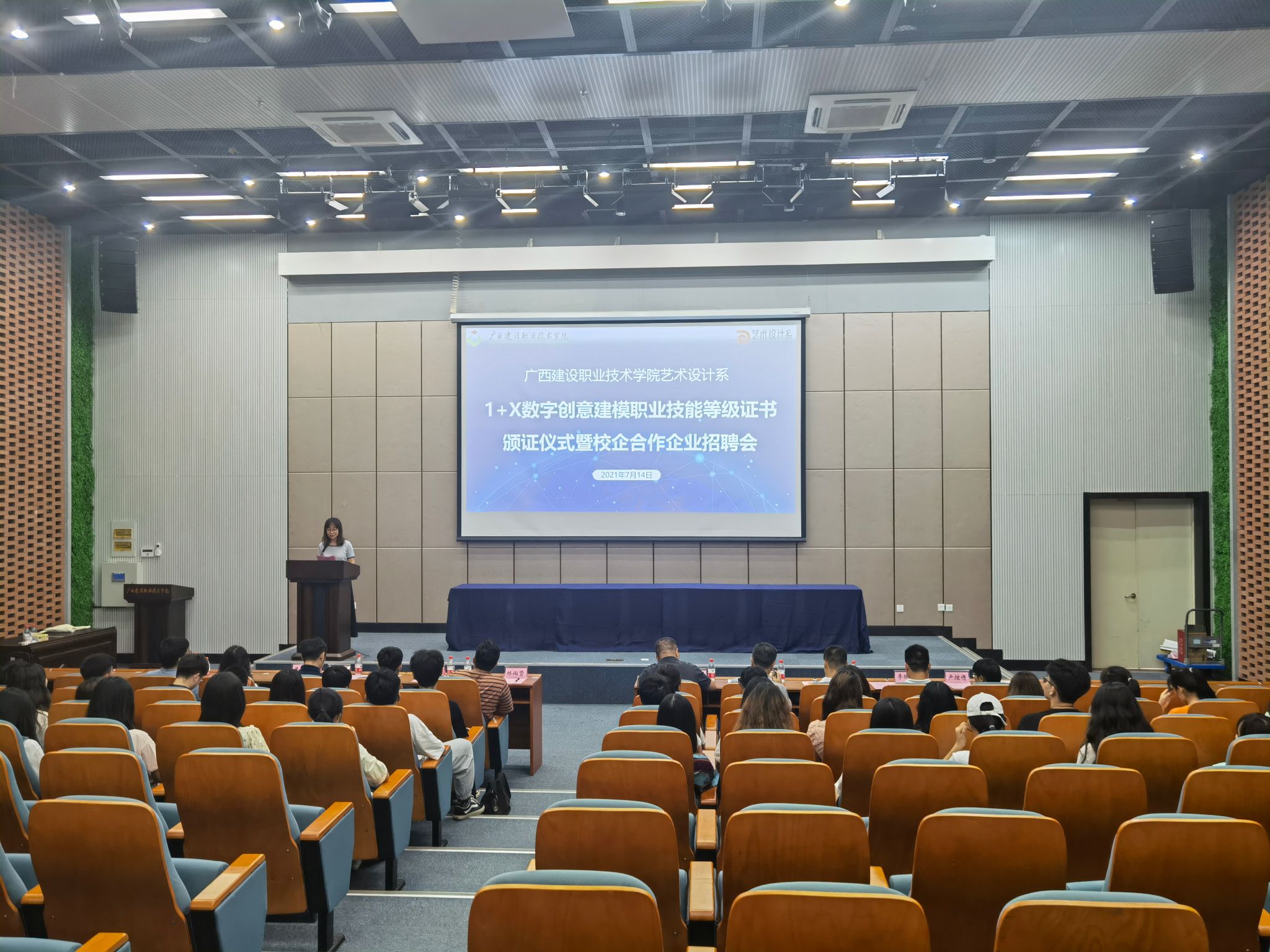 广西建院7月15日讯(艺术设计系 文/何游 张苑 图/何游 雷朝政)为推进校企合作、产教融合,艺术设计系于7月14日召开了“1+X”数字创意建模职业技能等级证书颁证仪式暨校企合作企业招聘会。学校教...