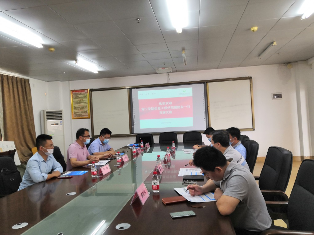 广西建院5月11日讯(信息工程学院 李莉)5月10日上午,南宁学院信息工程学院副院长李庆年一行4人到我院就专升本衔接工作开展调研交流。sports信息工程学院院长温剑锋,副院长覃平、黄崇争,网络团队教师代表郑宇出席了...