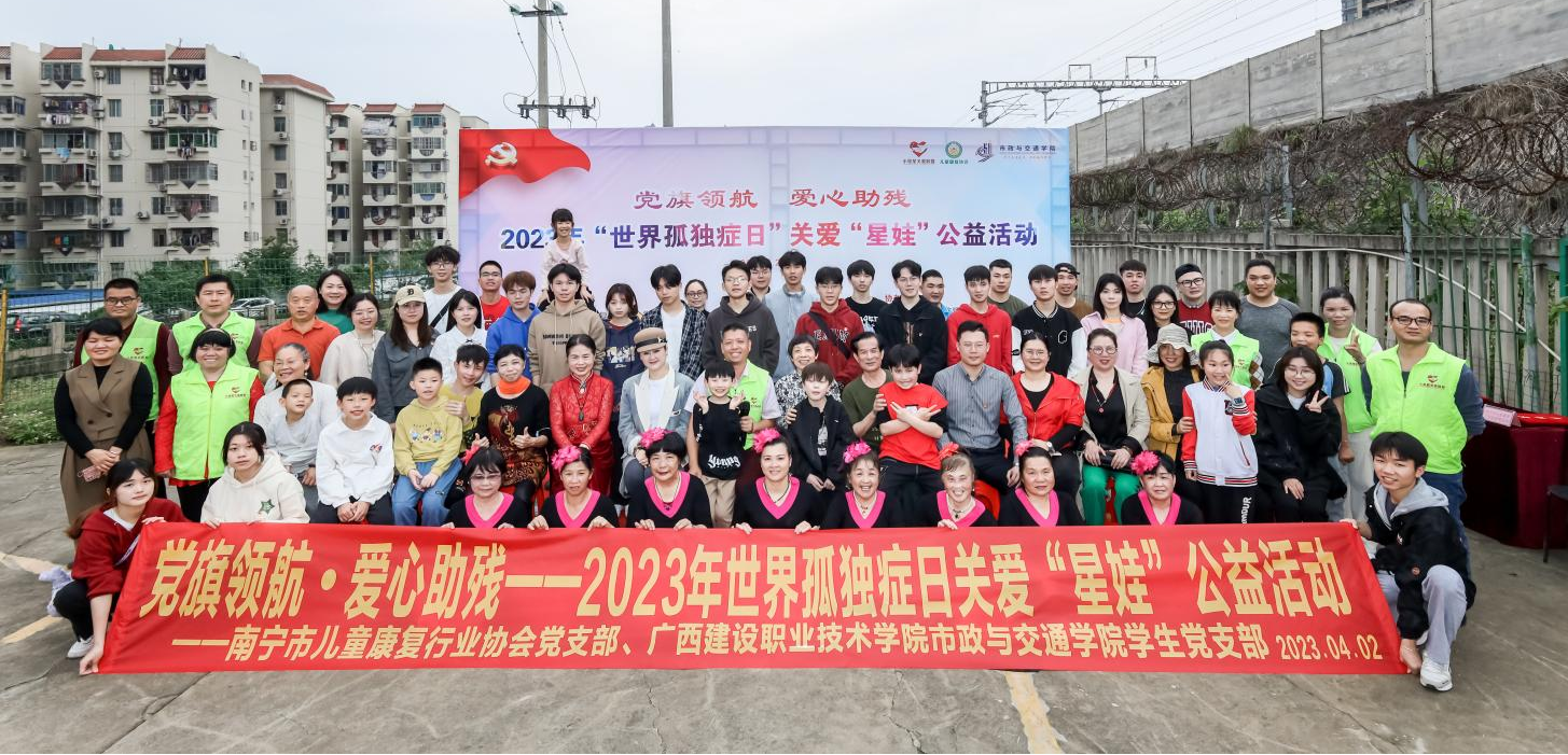 广西建院4月3日讯(市政与交通学院 杨铄)4月2日上午,由市政与交通学院学生党支部、党建工作室联合南宁市儿童康复行业协会党支部共同主办的党旗领航·爱心助残——2023年“世界孤独症日”关爱“星娃”公益活动在...